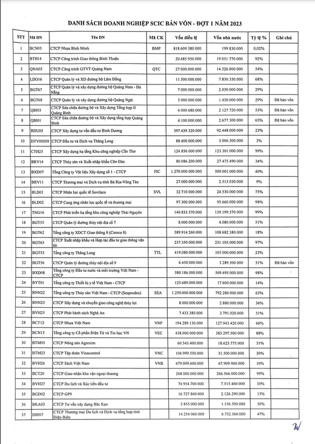 Danh sách 73 doanh nghiệp bán vốn của SCIC đợt 1 năm 2023: