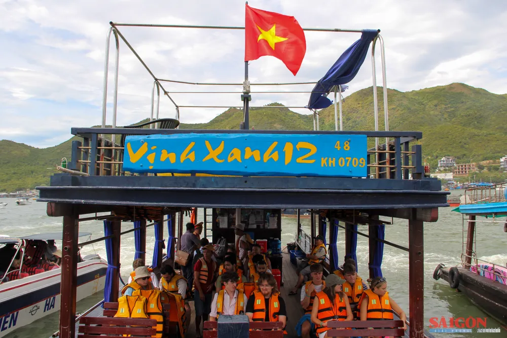 Du khách ngồi ca nô tham quan vịnh Nha Trang. Ảnh: HIẾU GIANG