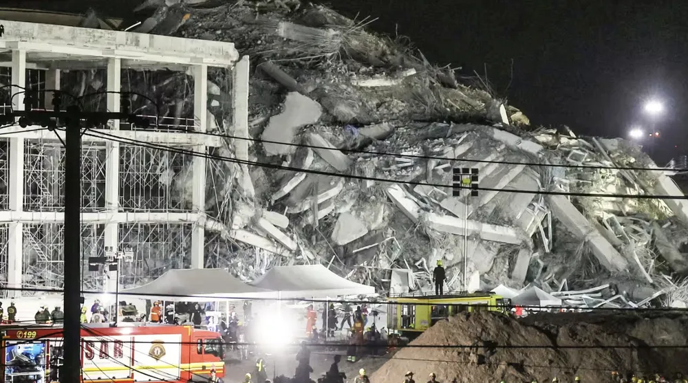 Hiện trường một tòa nhà bị sập ở thủ đô Bangkok (Thái Lan) sau trận động đất mạnh ở miền Trung Myanmar. Ảnh: Nikkei Asia
