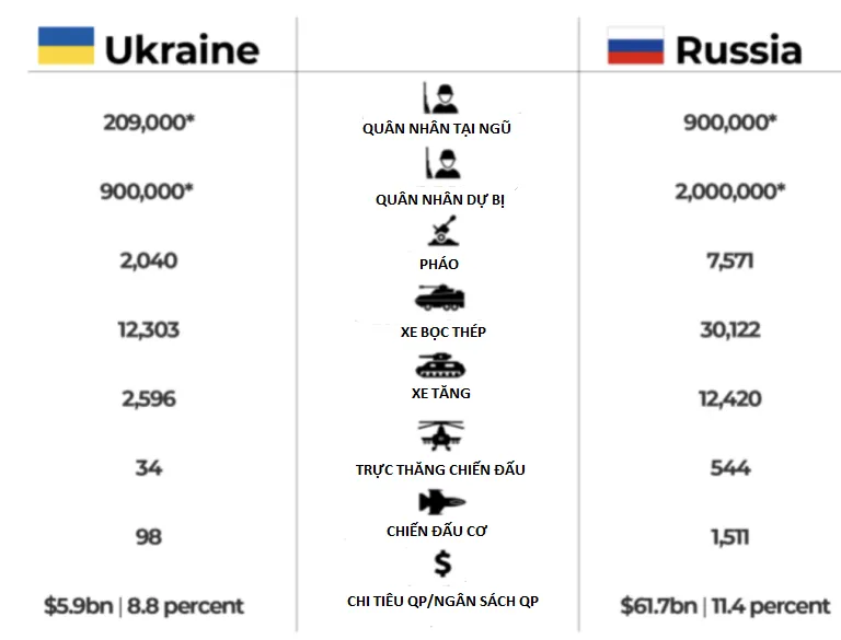 So sánh quân sự giữa Nga với Ukraine