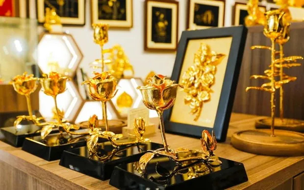 Anh Nguyễn Quang Anh, chủ cửa hàng vàng trên phố Hàng Bạc, quận Hoàn Kiếm, Hà Nội, cho biết trong dịp Lễ Tình nhân này, cửa hàng của anh nhận được khoảng 10-15 khách đặt hàng hoa hồng mạ vàng mỗi ngày. Bông hồng sẽ được làm bằng đồng, sau đó mạ vàng 24K, chiều dài cả cuống và nụ là 22cm. Giá dao động từ 2,5 đến 3 triệu đồng/bông, tùy loại, anh Nguyễn Quang Anh thông tin.