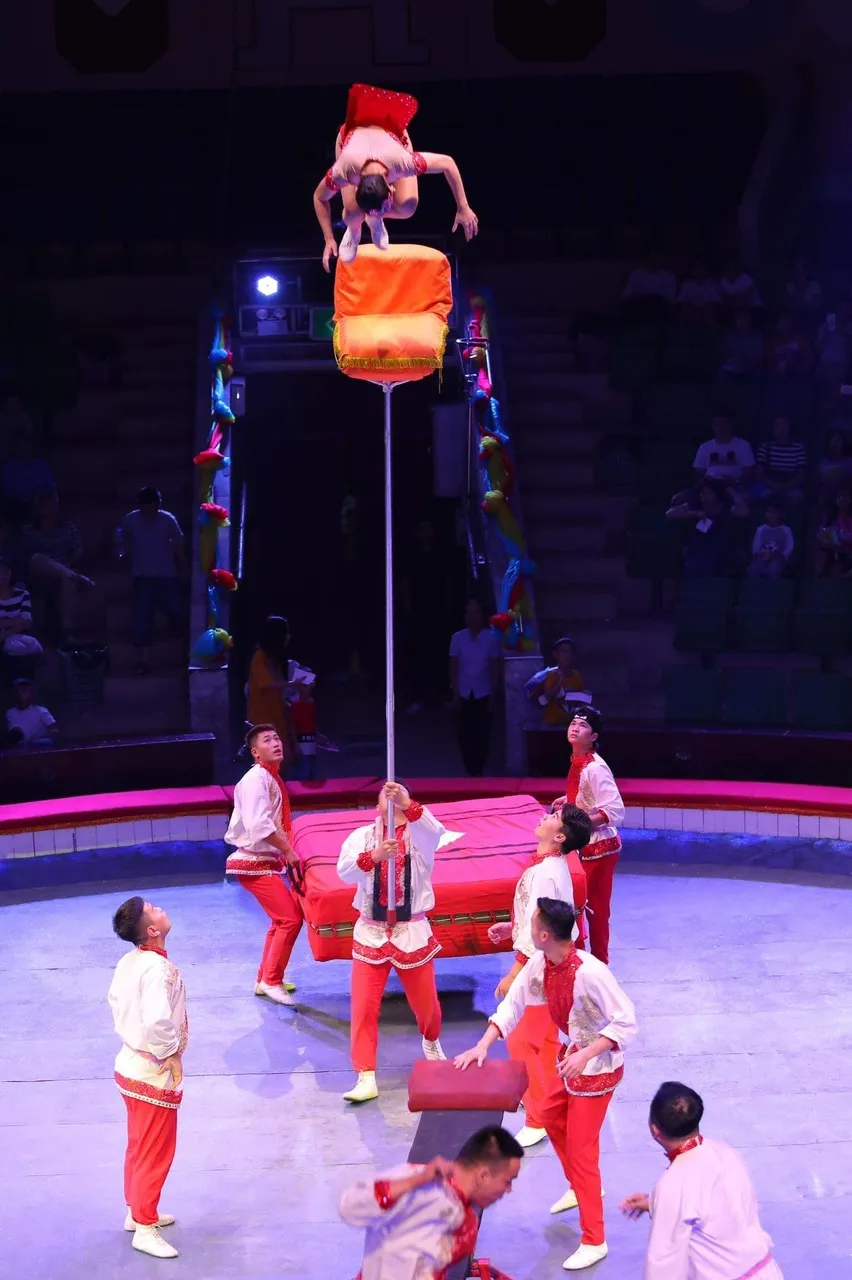 Tiết mục chồng đầu thể hiện sức mạnh đôi tay và sự hợp tác ăn ý của các nghệ sĩ xiếc tài năng. Ảnh: Liên đoàn Xiếc Việt Nam