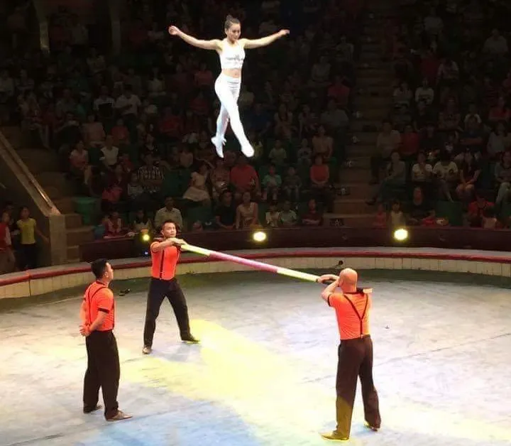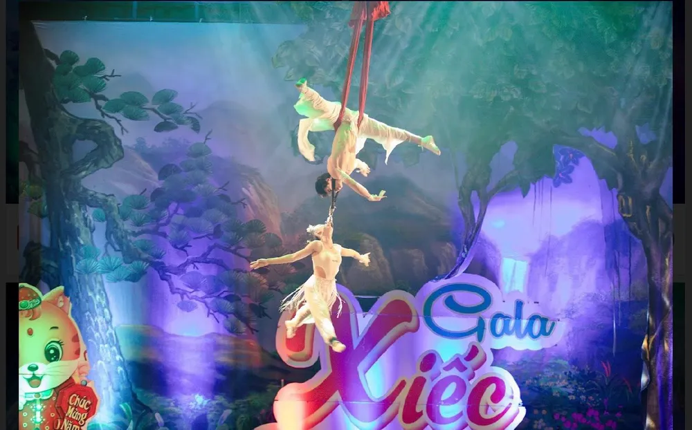 Màn diễn trên không trung của các nghệ sĩ xiếc. Ảnh: Liên đoàn Xiếc Việt Nam