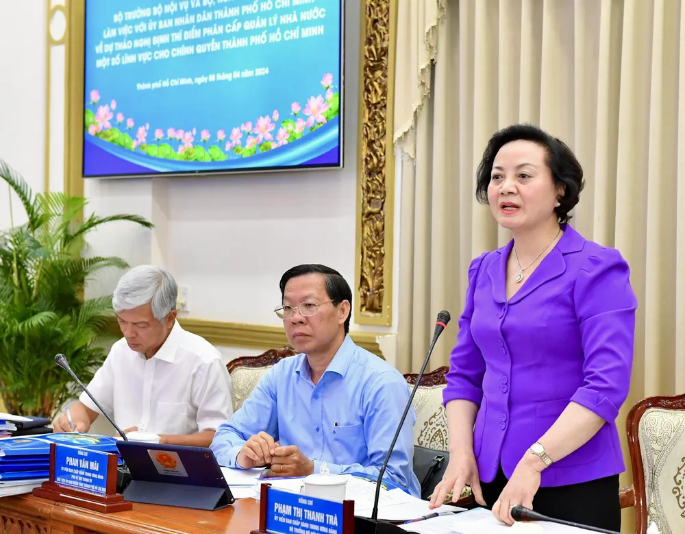 Tại buổi làm việc, Bộ trưởng Bộ Nội vụ nhấn mạnh, các ý kiến thảo luận trên tinh thần tập trung, dân chủ và quán triệt nguyên tắc, trên cơ sở chủ trương của Đảng, Hiến pháp, pháp luật có liên và tính đến yếu tố đặc thù của TPHCM. Đối với những vấn đề luật chưa quy định nhưng xuất phát từ yêu cầu thực tiễn của TPHCM thì cần phải xem xét, đưa vào quy định để điều chỉnh, đảm bảo khi ban hành nghị định phải chất lượng, mang tính khả thi cao.