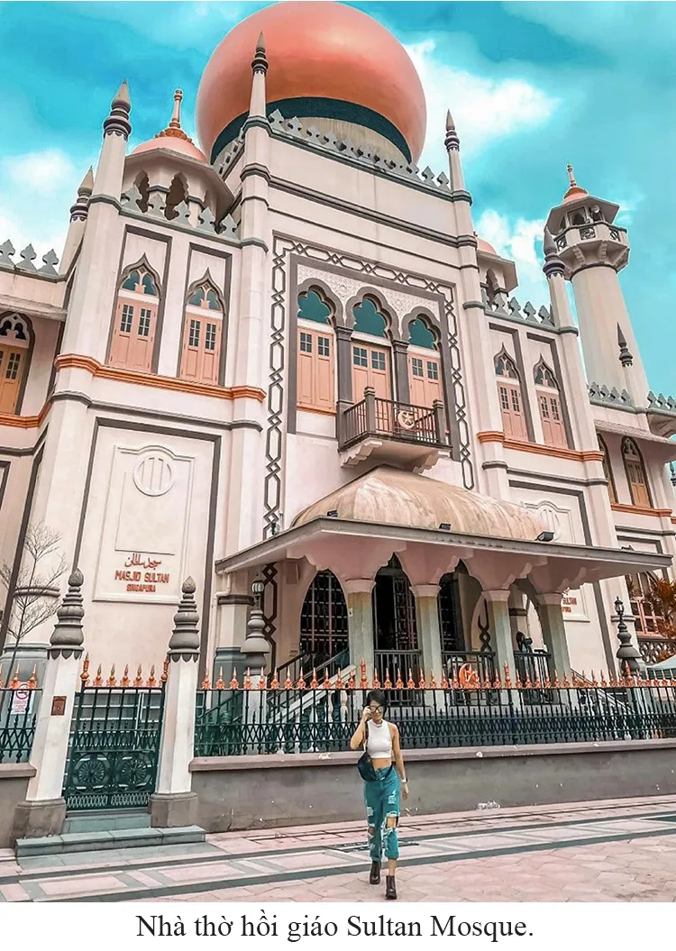 Nhà thờ Hồi giáo Sultan Mosque: Singapore là nơi giao thoa của nhiều nền văn hóa và tôn giáo khác nhau. Ở khu phố Ả Rập, Sultan Mosque thu hút bởi vẻ đẹp huyền bí theo phong cách Hồi giáo. Nhà thờ Hồi giáo Sultan tọa lạc tại Phố Muscat và đường North Bridge trong khu vực quận Kampong Glam và quận Rochor ở Singapore.