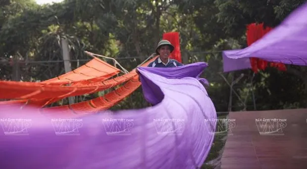 Khăn lụa tơ tằm, một trong những sản phẩm nổi tiếng của làng nghề Nha Xá. (Nguồn: Báo Ảnh Việt Nam)