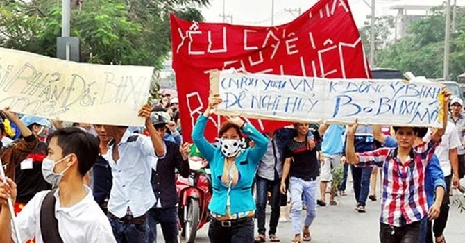 Những buổi bãi công, đình công của công nhân Việt Nam chủ yếu xảy ra tại các doanh nghiệp nước ngoài. Chế độ làm việc lên tới 12 giờ đồng hồ/ngày, kiểm soát số lần và giờ giấc đi vệ sinh, công việc kéo dài trong khi đến kỳ tăng lương thì lương tăng thêm không đủ ăn một bữa sáng… khiến nhiều công nhân bức xúc.