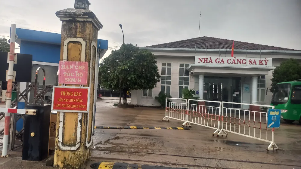 Cảng Sa Kỳ thông báo du khách và người dân về tình hình biển động, cảng ngừng hoạt động vào sáng 20-10. Ảnh: NGUYỄN TRANG