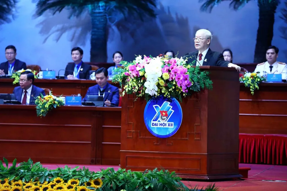 Tổng Bí thư Nguyễn Phú Trọng phát biểu tại Đại hội đại biểu toàn quốc lần thứ XII của Đoàn Thanh niên Cộng sản Hồ Chí Minh. Ảnh tư liệu