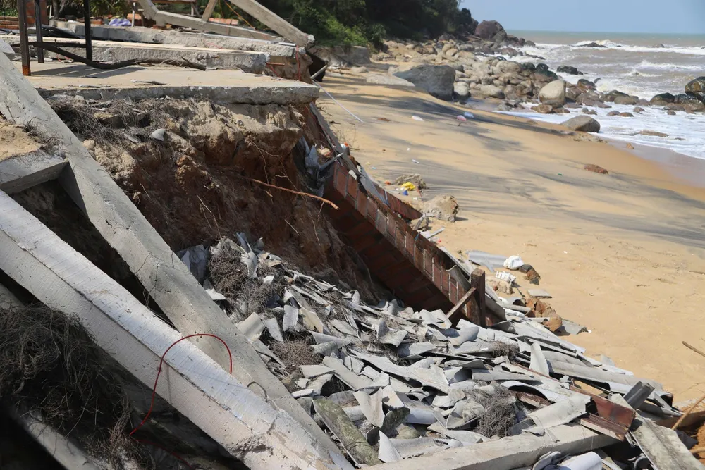 Sóng biển đánh tan hoang các công trình dọc bãi biển Hàm Rồng