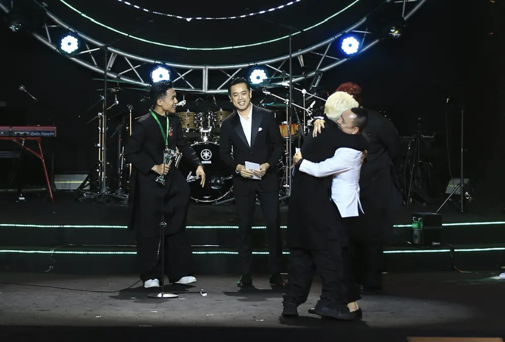 Hà Anh Tuấn nhận Liveshow của năm cho ekip của Liveconcert Chân trời rực rỡ. Ảnh: DŨNG PHƯƠNG