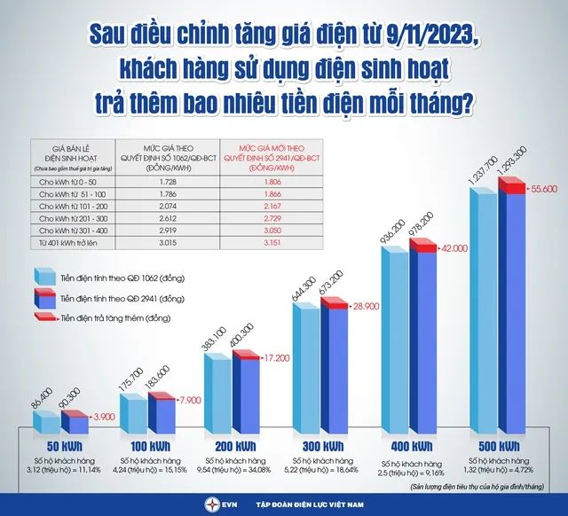 Giá bán lẻ điện bình quân tăng tương ứng 4,5%. Đồ họa EVN