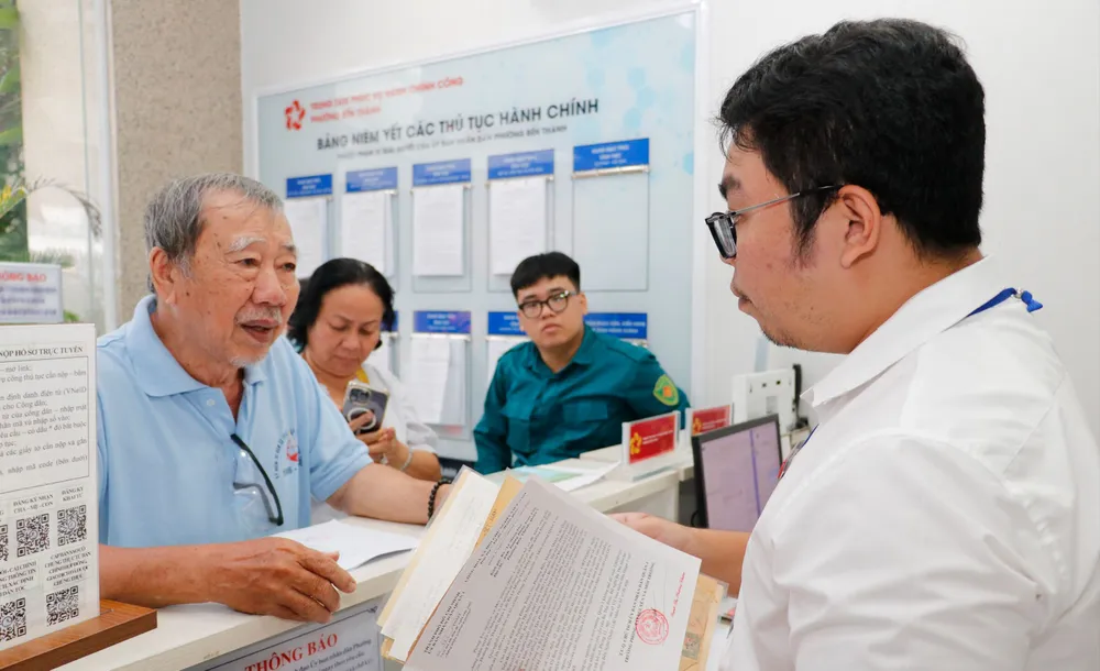 Công chức phường Bến Thành (TPHCM) tiếp nhận, giải quyết hồ sơ cho người dân. Ảnh: NGÔ BÌNH