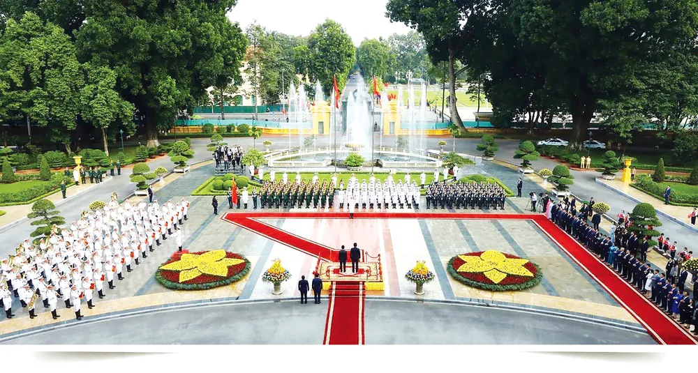 Tổng Bí thư Nguyễn Phú Trọng chủ trì lễ đón chính thức Tổng thống Hoa Kỳ Joe Biden thăm cấp Nhà nước tới Việt Nam, chiều 10-9-2023. Nhân dịp này, lãnh đạo hai nước đã ra Tuyên bố chung về nâng cấp quan hệ lên Đối tác Chiến lược toàn diện vì hòa bình, hợp tác và phát triển bền vững.