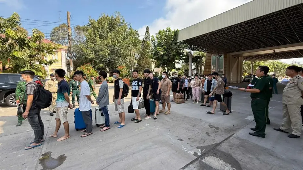 Cụ thể, vào lúc 8 giờ ngày 6-2, tại Cửa khẩu quốc tế Mộc Bài, Đồn Biên phòng Cửa khẩu quốc tế Mộc Bài - Bộ đội Biên phòng tỉnh Tây Ninh phối hợp Công an tỉnh Tây Ninh, Phòng Phòng chống ma túy và tội phạm - Cục Phòng chống ma túy và tội phạm tiếp nhận 177 công dân (19 nữ, 158 nam) do Đại sứ quán Việt Nam tại Campuchia trao trả.
