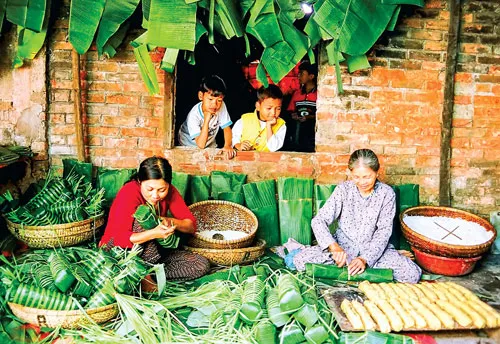 Áp tết, con đường độc đạo từ làng lên tỉnh, xuống huyện tấp nập người qua lại. Chủ yếu là người từ các làng mang gạo nếp, đỗ xanh, cam quýt, chuối về chợ để bán, rồi lại thồ hàng tết từ chợ về nhà. Xe đạp cọt kẹt, ngựa nặng oằn lưng, chân bước bậm bịch, cái tết nào cũng đến trong sự nặng nhọc mà tươi vui như thế.