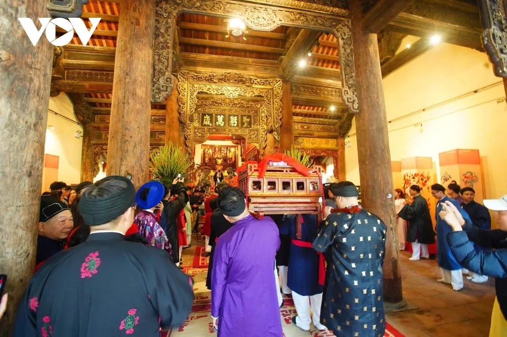 Đoàn rước thực hiện lễ Cáo yết Thành Hoàng, cúng Tổ nghề