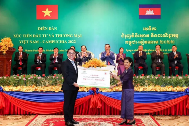 (ĐTTCO)-Tại Diễn đàn xúc tiến đầu tư và thương mại Việt Nam - Campuchia 2022 diễn ra tại Phnom Penh (Campuchia) ngày 8/11, THACO AGRICULTURE (Tập đoàn thành viên của THACO GROUP) đã trao tặng 15 xe khám chữa bệnh cơ động trị giá 240.000 USD cho Hội chữ thập đỏ Campuchia.