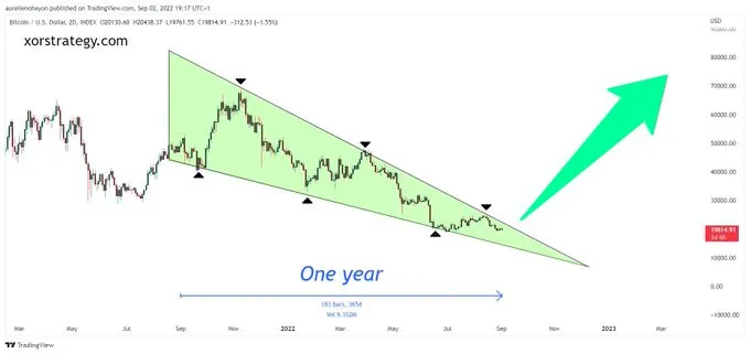 Ngoài ra, theo nhà phân tích này, mô hình nêm tăng đã được hình thành trên biểu đồ cho thấy khả năng BTC tăng giá trong những ngày tới.
