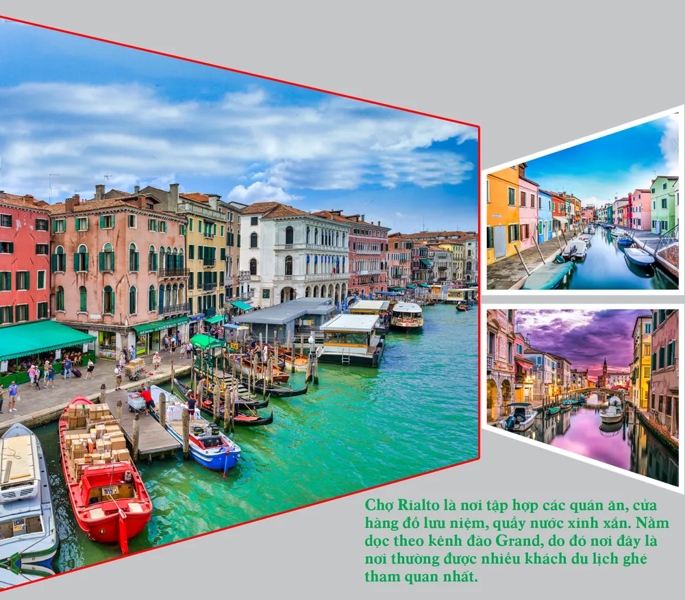 Chợ Rialto: Nếu du khách muốn tìm một nơi nhộn nhịp để mua sắm và mang về một món quà nhỏ, thì chợ Rialto là một địa điểm tuyệt vời tiếp theo trong chuyến du ngoạn Venice. Chợ Rialto là nơi tập hợp các quán ăn, cửa hàng đồ lưu niệm, quầy nước xinh xắn. Nằm dọc theo kênh đào Grand, do đó nơi đây là nơi thường được nhiều khách du lịch ghé tham quan nhất.