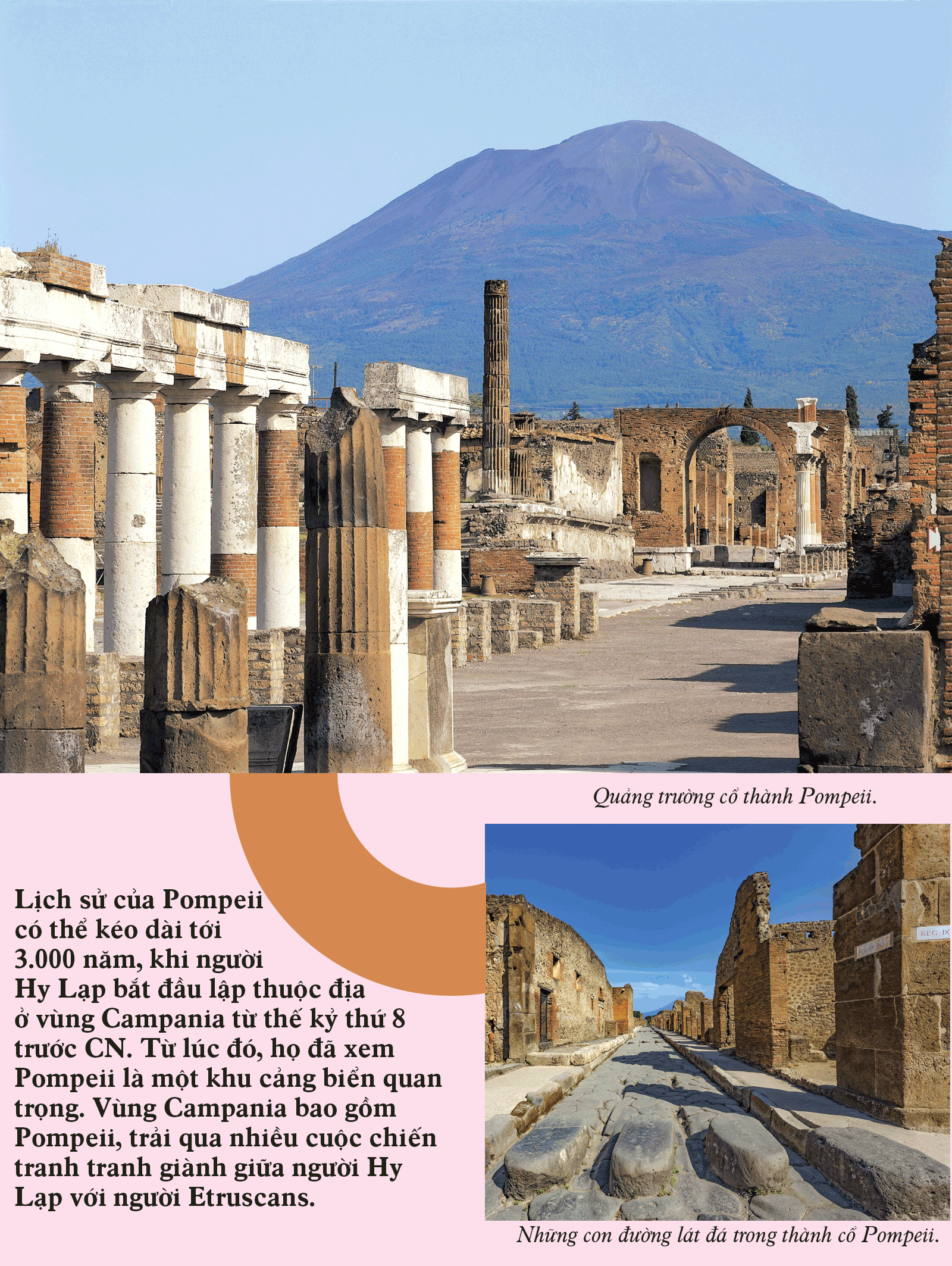 Pompeii nằm trong vùng Campania, một khu vực bờ biển xinh đẹp về phía Tây Nam Italia, gần thành phố Naples và núi lửa Vesuvius. Sự hình thành và phát triển của Pompeii trải qua giai đoạn lịch sử tương đối dài và nhiều biến động thăng trầm, bởi đây là mục tiêu tranh giành của các đế chế cổ đại. Lịch sử của Pompeii có thể kéo dài tới 3.000 năm, khi người Hy Lạp bắt đầu lập thuộc địa ở vùng Campania từ thế kỷ thứ 8 trước CN. Từ lúc đó, họ đã xem Pompeii là một khu cảng biển quan trọng. Vùng Campania bao gồm Pompeii, trải qua nhiều cuộc chiến tranh tranh giành giữa người Hy Lạp với người Etruscans.