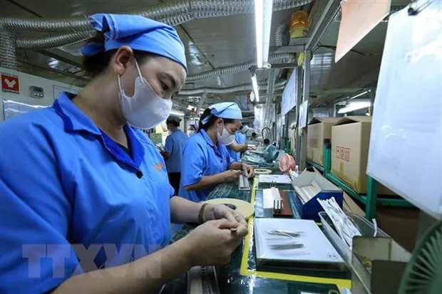Sản xuất tại Công ty TNHH Sankoh Việt Nam. (Ảnh: Tuấn Anh/TTXVN)