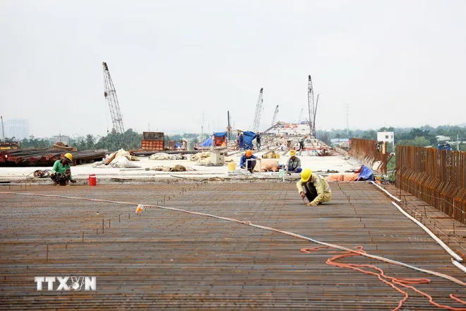 Công trường dự án Vành đai 3 TPHCM thi công xuyên Lễ Quốc khánh 2/9. (Ảnh: Hồng Đạt/TTXVN)