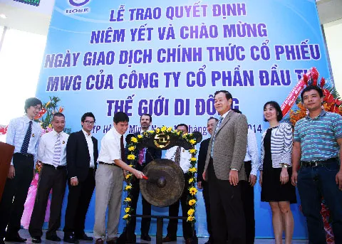 (ĐTTC) - Sáng ngày 14 -7-2014, Công ty Cổ phần Đầu tư Thế Giới Di Động tổ chức lễ công bố việc niêm yết cổ phiếu MWG trên Sàn Giao Dịch Chứng Khoán TP.HCM.