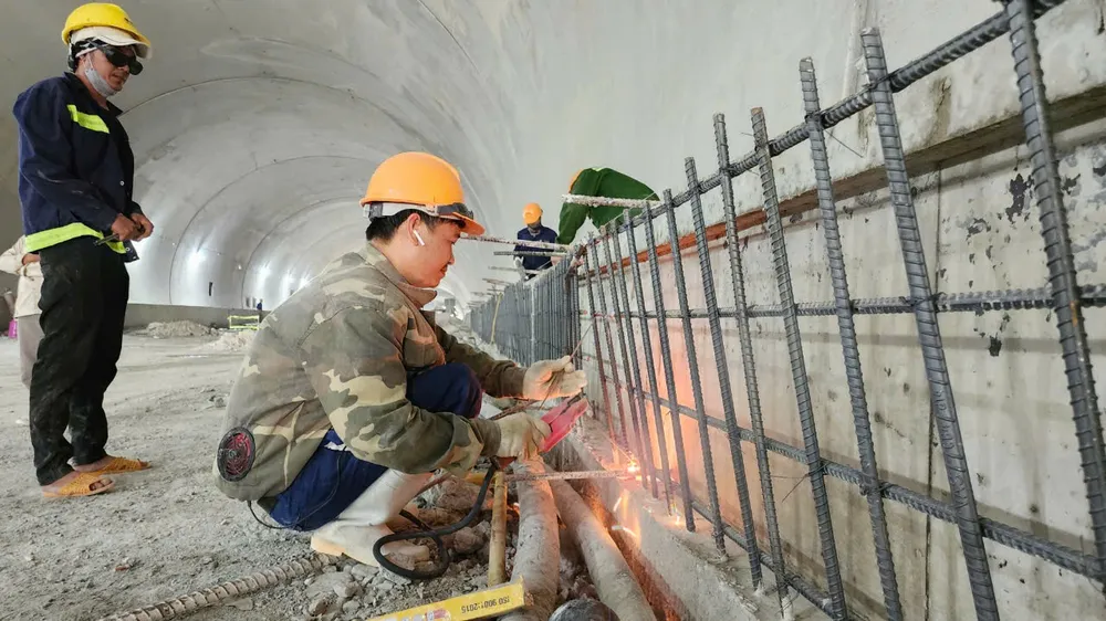 Làm việc bên trong đường hầm. Ảnh: NGUYỄN TRANG
