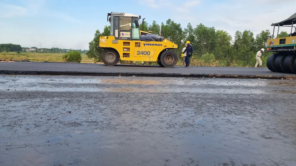 Ông Trần Văn Chí, Chỉ huy trưởng gói thầu XL1, cho biết: “Sau khi tiến hành trải thảm nhựa thử đầu tiên, chúng tôi tiến hành căn chỉnh, kiểm tra các yếu tố kỹ thuật, chất lượng. Mùa mưa bão sắp cận kề, do vậy cần phải hoàn thành bê tông, đẩy nhanh cấp phối đảm bảo tiến độ dự án, các kỹ sư, công nhân đều làm việc xuyên lễ, dự kiến đến cuối tháng 9 sẽ có 3-5km đường được trải thảm nhựa”.