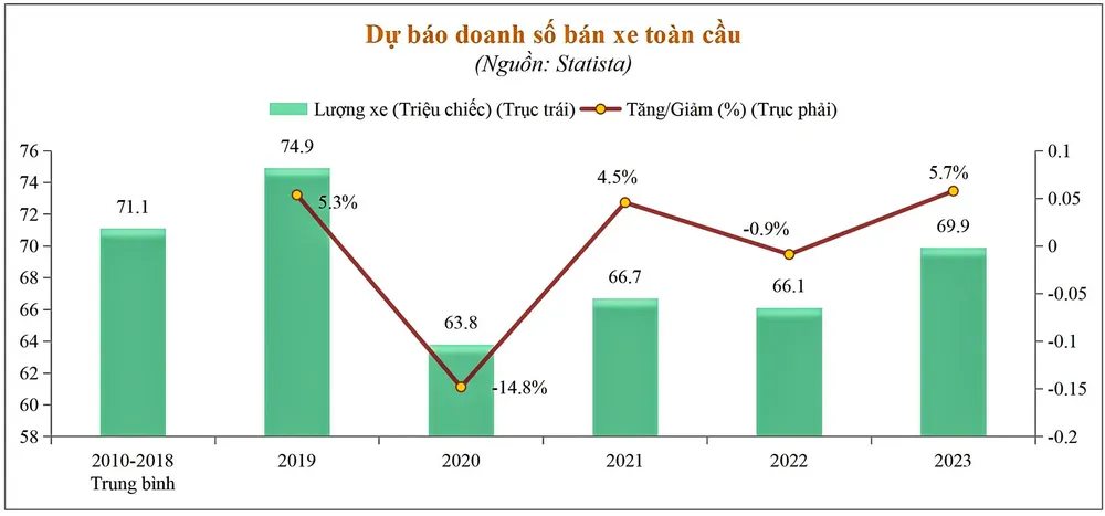 Do đó, dư địa để ngành ô tô tăng trưởng trong những năm tới còn rất lớn do cơ sở để so sánh là năm 2022 vẫn đang ở mức rất thấp. Các tổ chức nghiên cứu đều nhận định, mức tăng trưởng của ngành ô tô toàn cầu trong 2 năm 2023 và 2024 khoảng 4-6% mỗi năm.