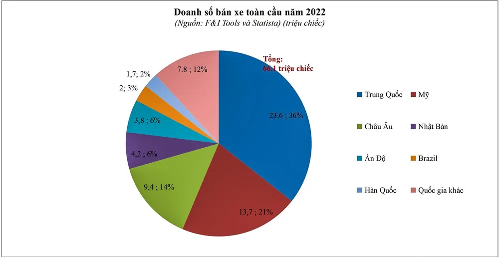 Doanh số bán xe của Trung Quốc đạt khoảng 23,6 triệu chiếc trong năm 2022, tăng khoảng 10% so với 2021, chiếm tỷ trọng 36% thị trường tiêu thụ xe toàn cầu. Mức tăng trưởng ấn tượng này được hỗ trợ bởi các ưu đãi thuế của chính phủ trong thời gian phong tỏa nghiêm ngặt do Covid-19.