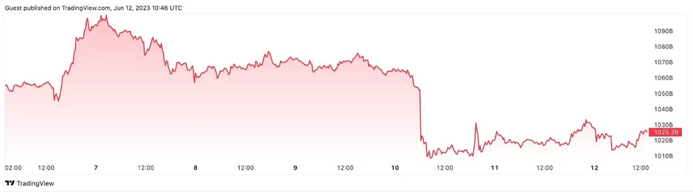 Biểu đồ vốn hóa thị trường tiền điện tử trong 1 tuần. Nguồn: TradingView