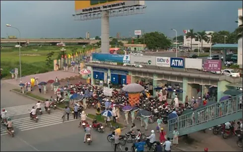 Tại khu công nghiệp Bắc Thăng Long, Hà Nội, có hàng nghìn công nhân lao động đang làm việc, vậy mà chỉ có vài chiếc máy rút tiền tự động của một số ngân hàng như: Agribank, BIDV, Vietcombank...được đặt ở cổng của khu công nghiệp.