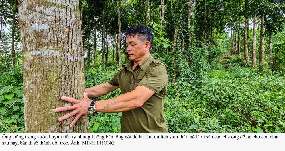 Với hệ thống cây rừng xanh bền vững, ông Dũng và 4 anh em đều được mời chào bán rừng với giá hàng chục tỷ đồng, nhưng họ đều lắc đầu. Ông Dũng nói: “Mỗi cây huỵnh cho ít nhất 3-5 khối gỗ, mỗi khối 10 triệu đồng, bán rẻ cũng đã hơn chục tỷ đồng. Nhưng bán rồi họ đến khai thác, trống rừng, trọc đất. Nghĩ mà xót nên không bán. Di sản cha ông bảo tồn phải giữ cảnh quan để cho con cháu sau này không trách móc vì ham tiền mà bán đi màu xanh quý giá này”.