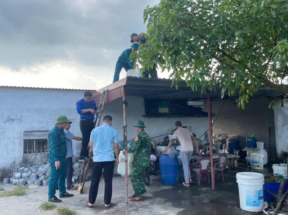 Cán bộ, chiến sĩ Đồn Biên phòng Trà Cổ giúp người dân gia cố nhà cửa phòng chống bão số 3. Ảnh: Báo Quảng Ninh