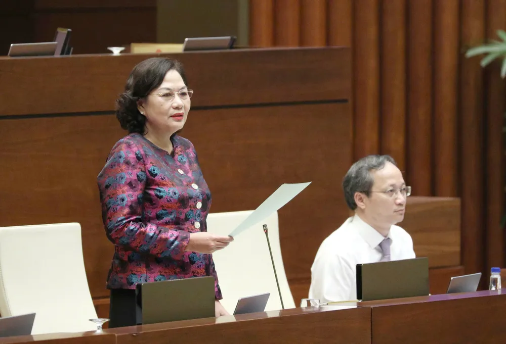 Thống đốc NHNN Nguyễn Thị Hồng phát biểu giải trình, làm rõ một số vấn đề đại biểu Quốc hội nêu, sáng 29-5. Ảnh: VIẾT CHUNG