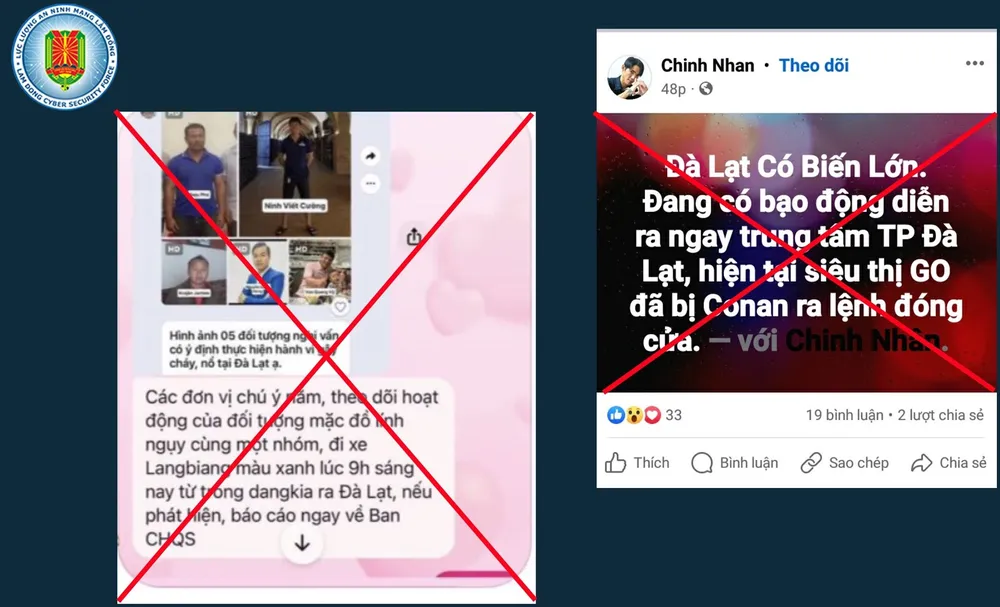 Theo Công an tỉnh Lâm Đồng, trên không gian mạng lan truyền thông tin cho rằng “Đà Lạt xảy ra biến lớn”, “Đà Lạt xảy ra vấn đề, cấm người dân ra đường”, “Đà Lạt xảy ra bạo động, bắn súng...”.