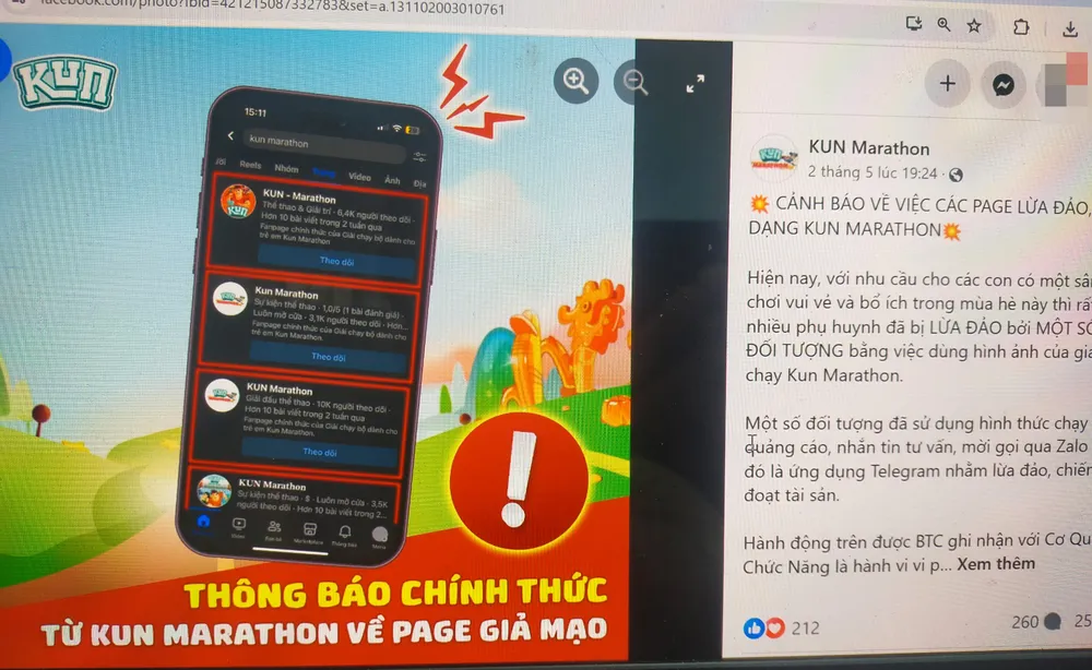 Đơn vị tổ chức giải chạy marathon liên tục cảnh báo về các fanpage lừa đảo trên mạng