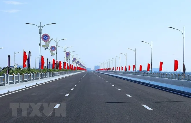 Cầu Vĩnh Tuy giai đoạn 2 sẽ góp phần giảm ùn tắc và tai nạn giao thông trên tuyến. (Ảnh: Việt Hùng/Vietnam+)