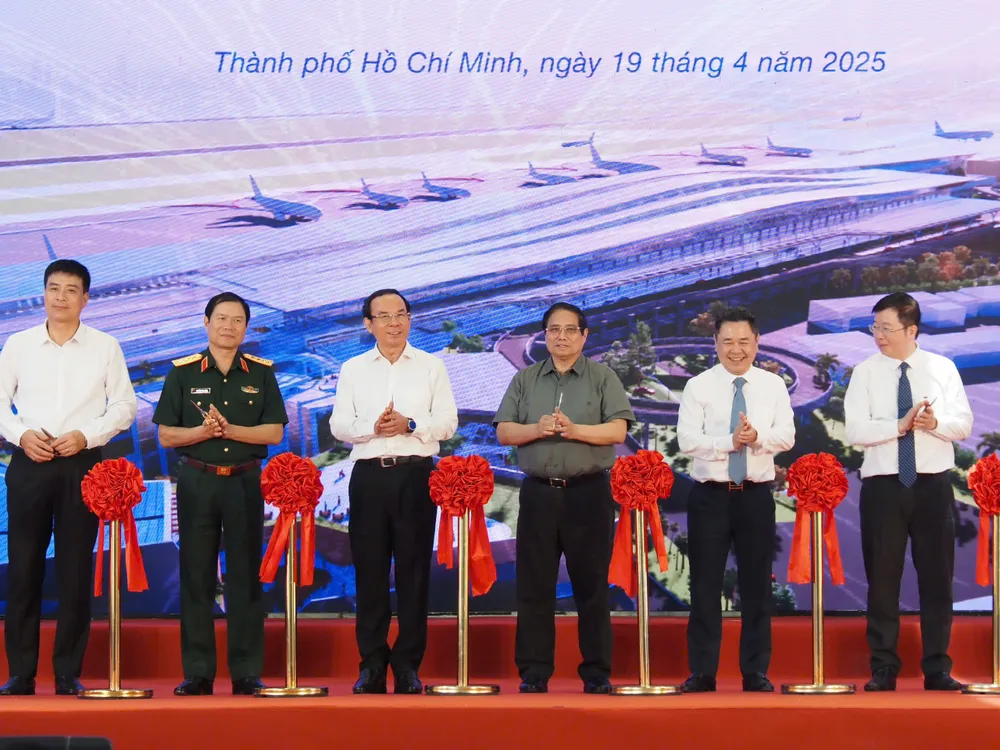 Về dự án nhà ga T3 Sân bay Tân Sơn Nhất, Thủ tướng nhấn mạnh: "Một trong những công trình tiêu biểu là nhà ga T3, Cảng Hàng không quốc tế Tân Sơn Nhất, đã hoàn thành và đưa vào khai thác đúng dịp này, vượt tiến độ 2 tháng.