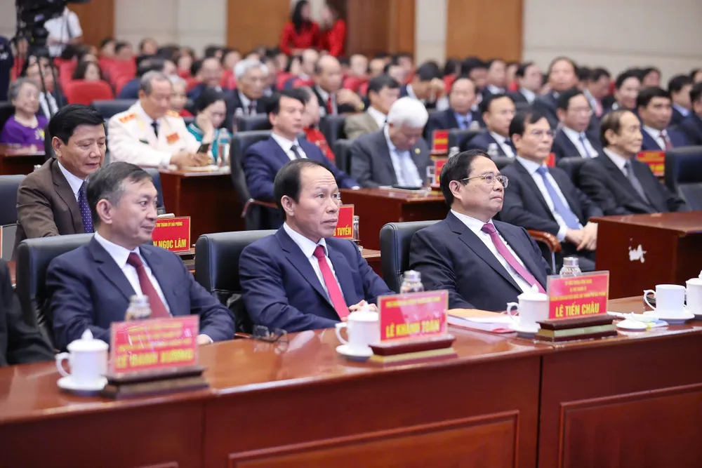 Đồng chí Phạm Minh Chính, Ủy viên Bộ Chính trị, Thủ tướng Chính phủ dự Lễ công bố các nghị quyết, quyết định của Trung ương và địa phương tại thành phố Hải Phòng. TP Hải Phòng đã tổ chức 1 điểm cầu truyền hình trực tiếp buổi lễ và kết nối trực tuyến với điểm cầu 114 xã, phường, đặc khu để cán bộ, công chức, viên chức, người lao động và nhân dân theo dõi.