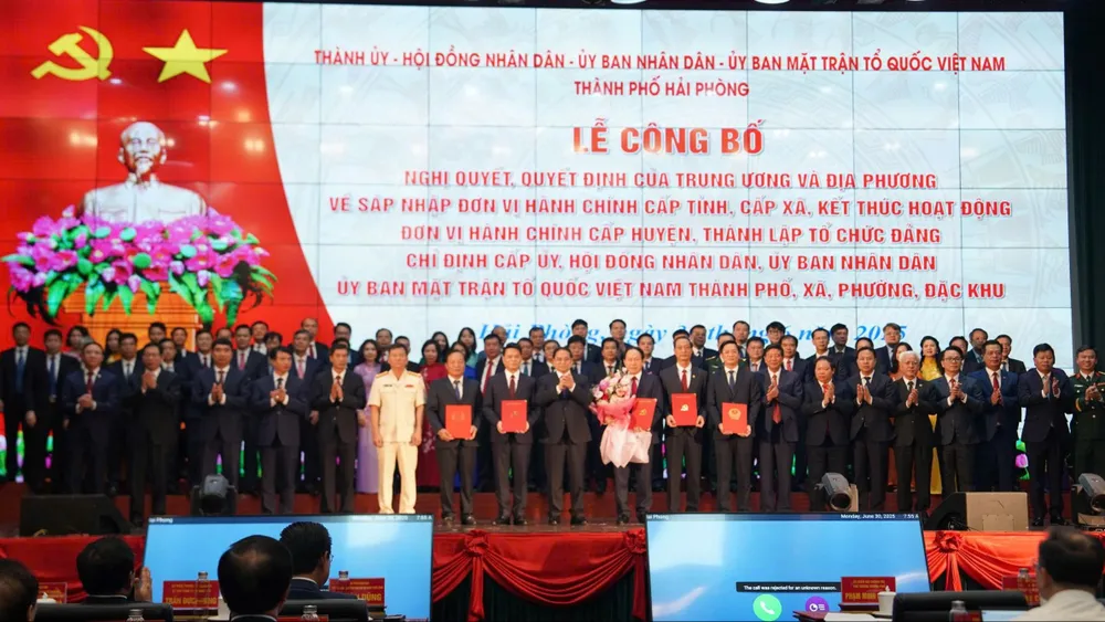 Tại buổi lễ cũng công bố các nghị quyết, quyết định của TP Hải Phòng liên quan tới tổ chức bộ máy, nhân sự tại các xã, phường, đặc khu mới; công bố và trao quyết định của Thủ tướng Chính phủ công nhận TP Hải Phòng hoàn thành nhiệm vụ xây dựng nông thôn mới năm 2024.