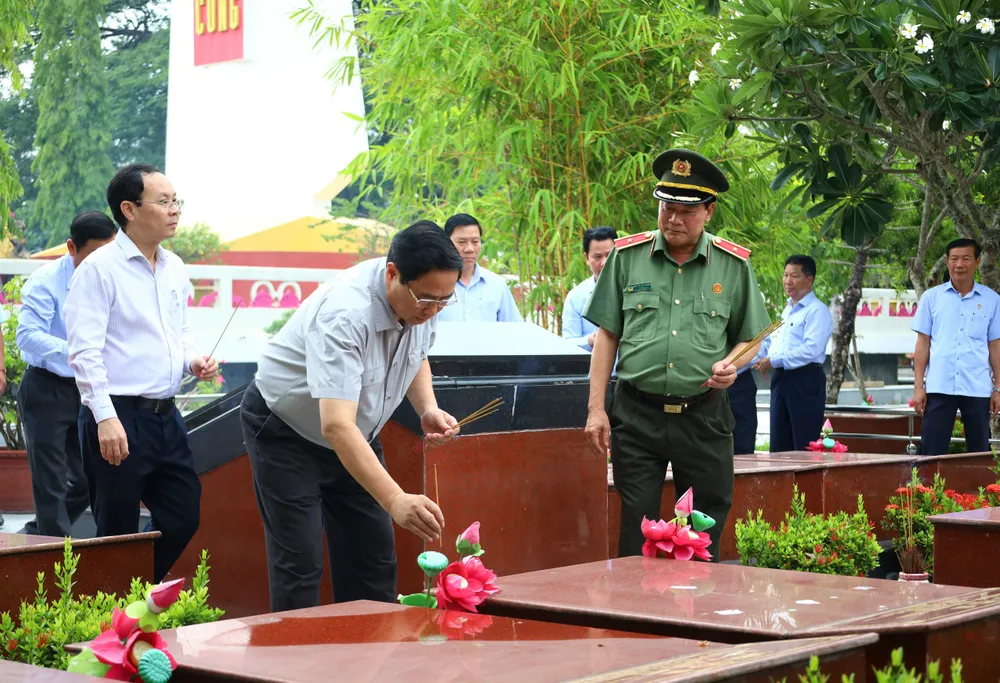 Thủ tướng Phạm Minh Chính thắp hương tưởng niệm các anh hùng liệt sĩ tại Nghĩa trang Liệt sĩ TP Cần Thơ, sáng 13-7