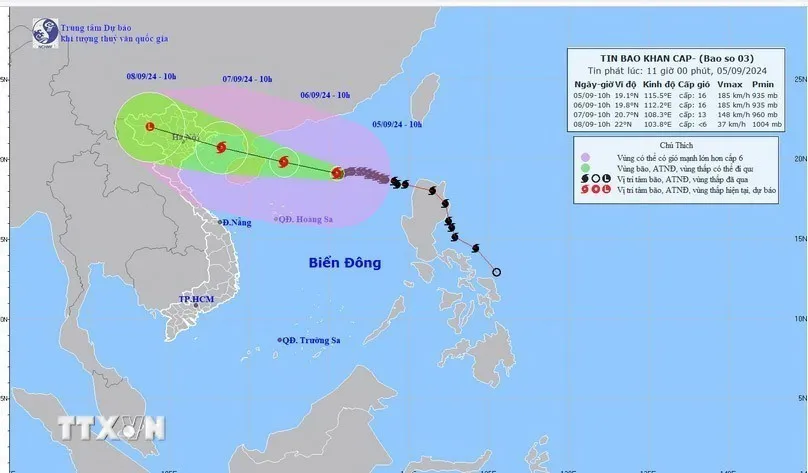 Bản đồ đường đi của bão số 3 lúc 10 giờ ngày 5-9. Ảnh: TTXVN phát