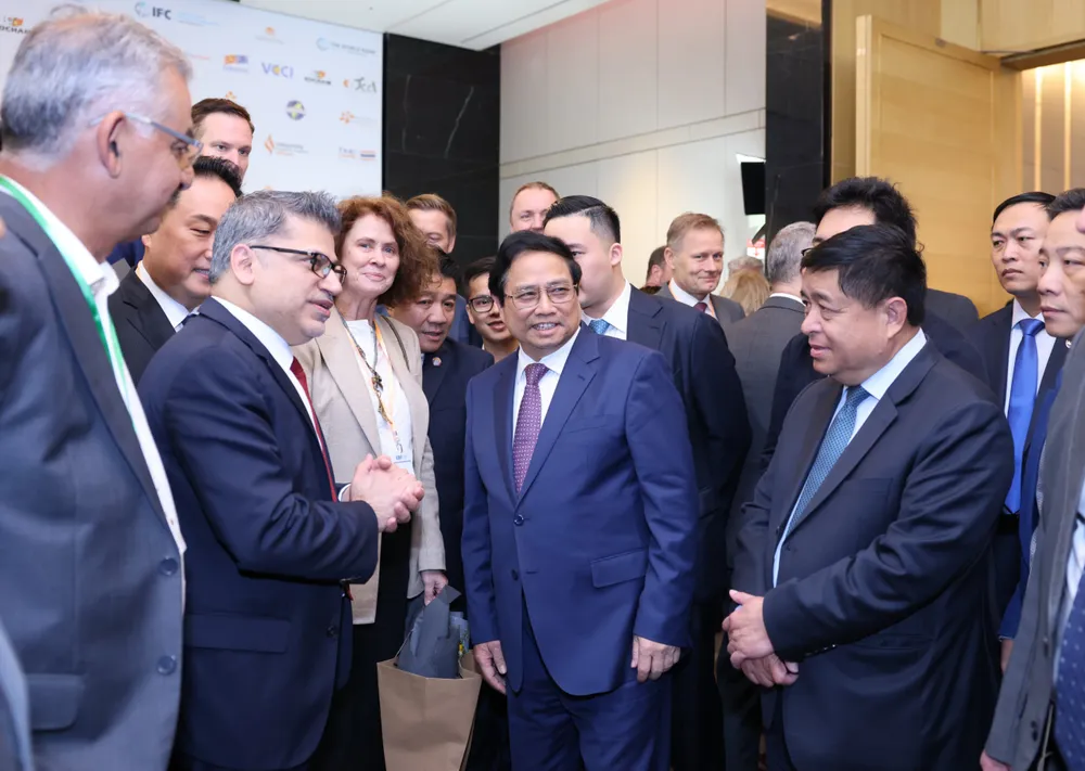 Về phía Chính phủ Việt Nam, Thủ tướng cam kết sẽ thực hiện 3 "bảo đảm": bảo đảm quyền và lợi ích hợp pháp, chính đáng của doanh nghiệp nói chung, doanh nghiệp FDI nói riêng, để ổn định và phát triển theo hướng tăng trưởng xanh là xu thế của thời đại; bảo đảm ổn định chính trị, trật tự, an toàn xã hội, độc lập chủ quyền, toàn vẹn lãnh thổ để cộng đồng doanh nghiệp yên tâm đầu tư lâu dài; bảo đảm ổn định về năng lượng theo hướng chuyển đổi xanh, chuyển đổi số và bảo đảm hệ sinh thái về chuyển đổi xanh.