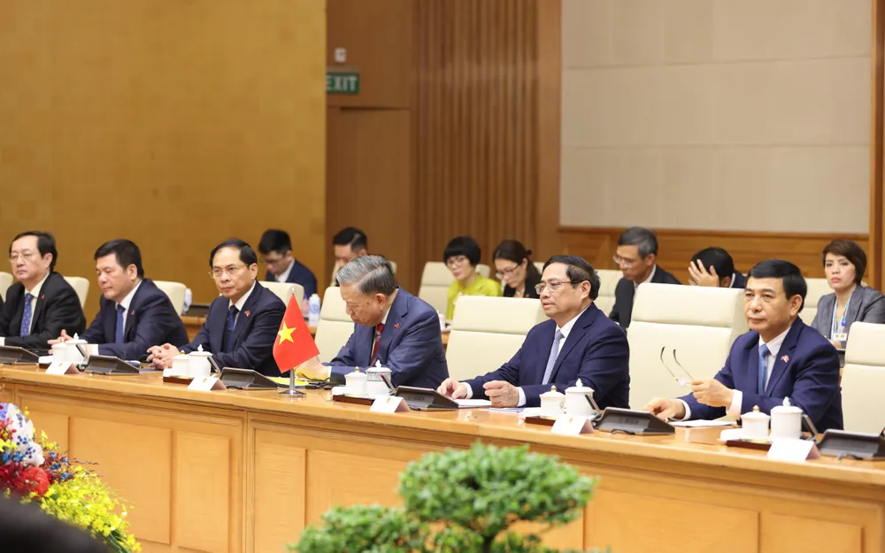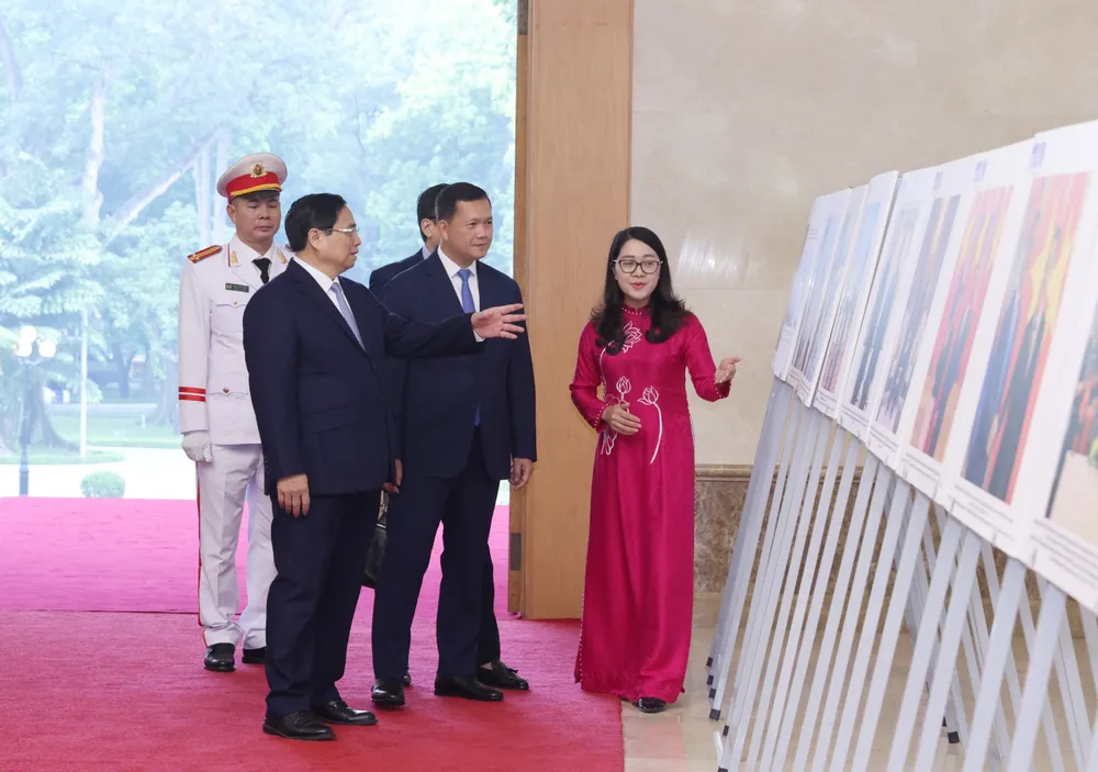 Sau lễ đón, hai Thủ tướng tiến hành hội đàm tại Trụ sở Chính phủ. Trước khi hội đàm, Thủ tướng Phạm Minh Chính và Thủ tướng Campuchia Hun Manet cùng tham quan trưng bày ảnh về đất nước, con người và quan hệ tốt đẹp Việt Nam-Campuchia.