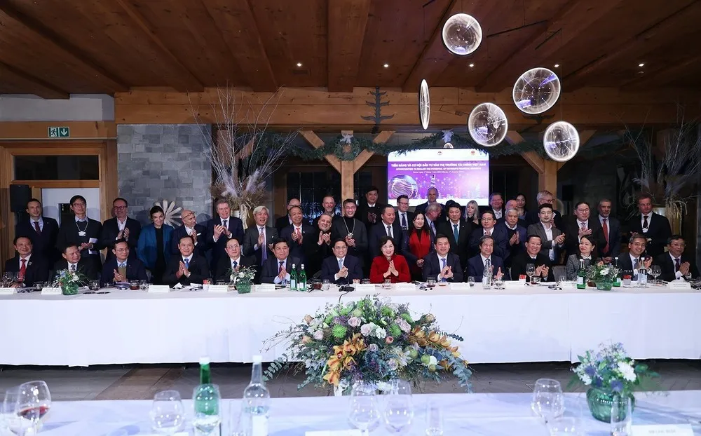 Tối 17/1 theo giờ địa phương, tại Davos (Thụy Sĩ), nhân dịp tham dự Hội nghị Thường niên lần thứ 54 của Diễn đàn Kinh tế Thế giới (WEF Davos 2024), Thủ tướng Chính phủ Phạm Minh Chính chủ trì tọa đàm với đại diện các ngân hàng và các quỹ đầu tư tài chính hàng đầu thế giới về tiềm năng và cơ hội đầu tư vào thị trường tài chính Việt Nam.