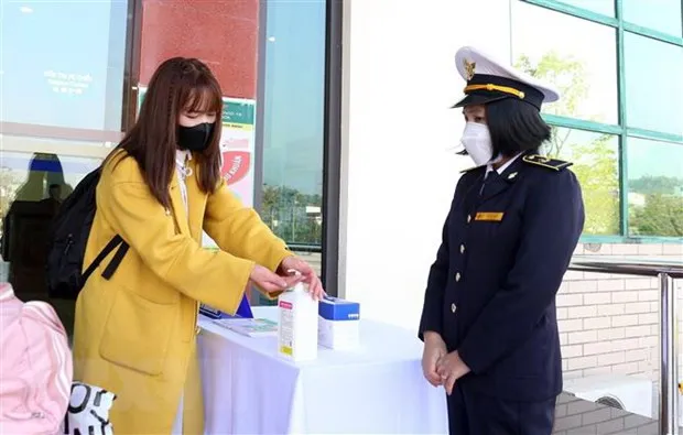 Những du khách nhập cảnh vào tỉnh Lào Cai thực nghiệm nghiêm ngặt các yêu cầu chống dịch COVID-19. (Ảnh: Quốc Khánh/TTXVN)