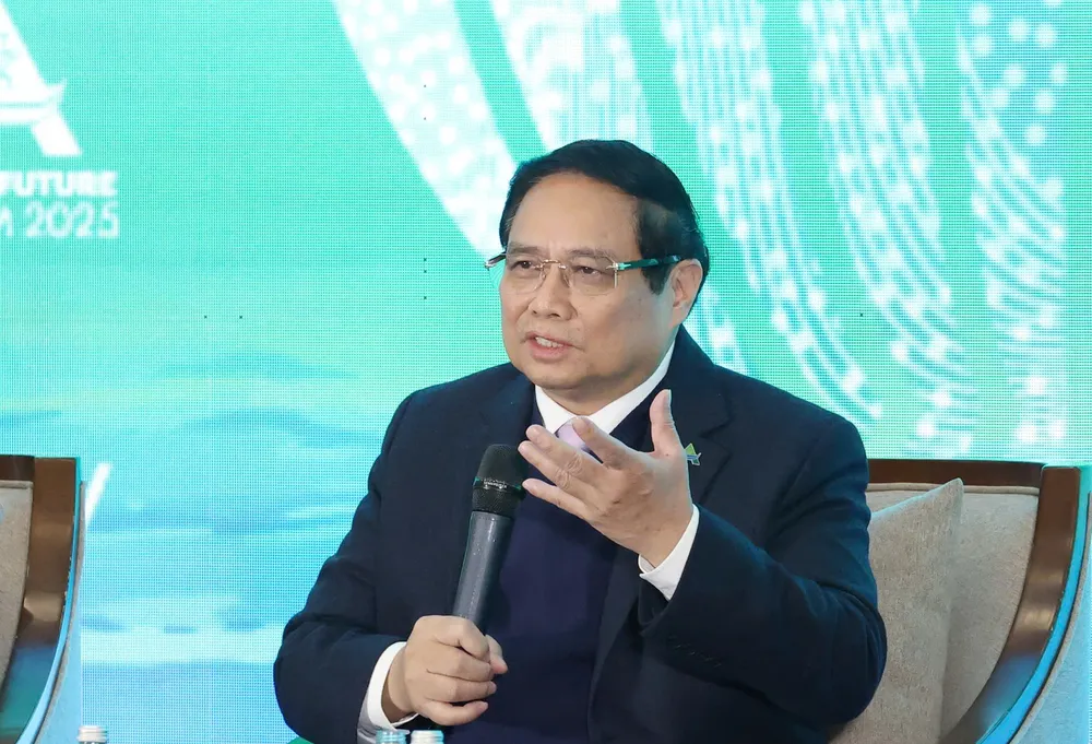 Thủ tướng Phạm Minh Chính và Tổng thống Timor-Leste José Ramos-Horta tại phiên toàn thể cấp cao Diễn đàn Tương lai ASEAN 2025, sáng 26-2. Ảnh: QUANG PHÚC